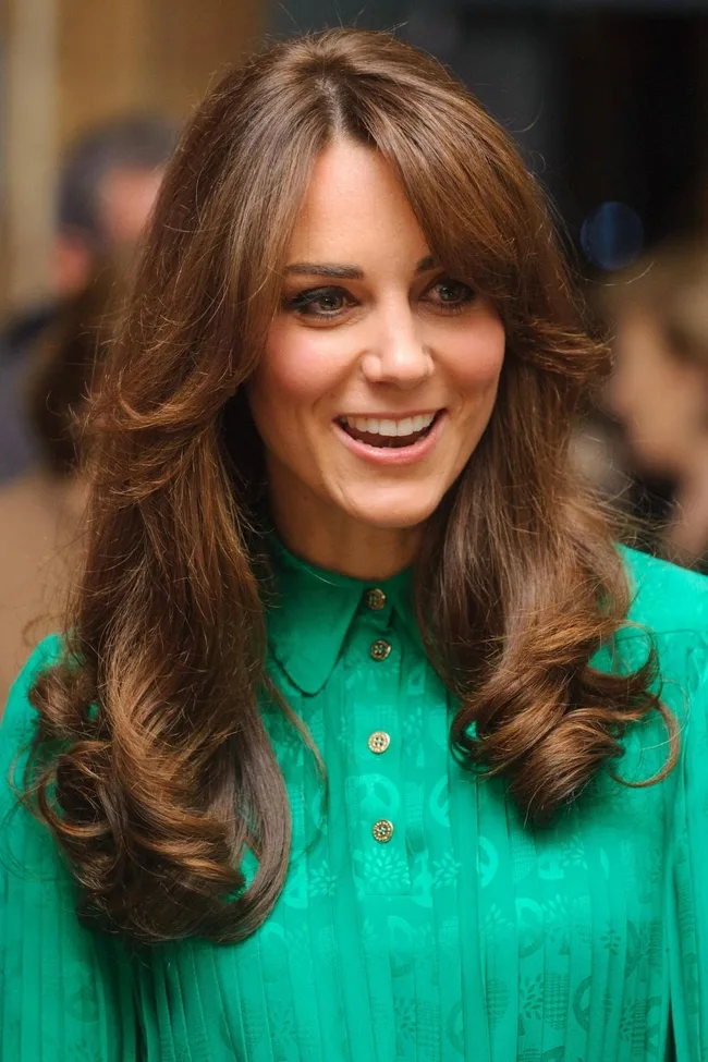 Kate’s curtain bangs made headlines a year after her wedding when she showed off her new 70s-style do at the Natural History Museum.