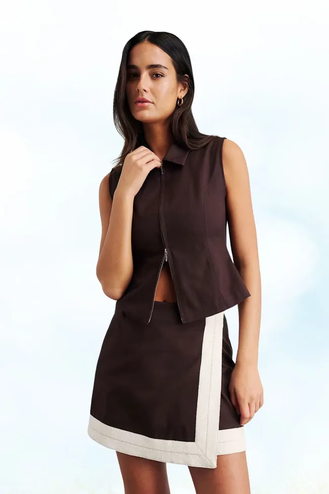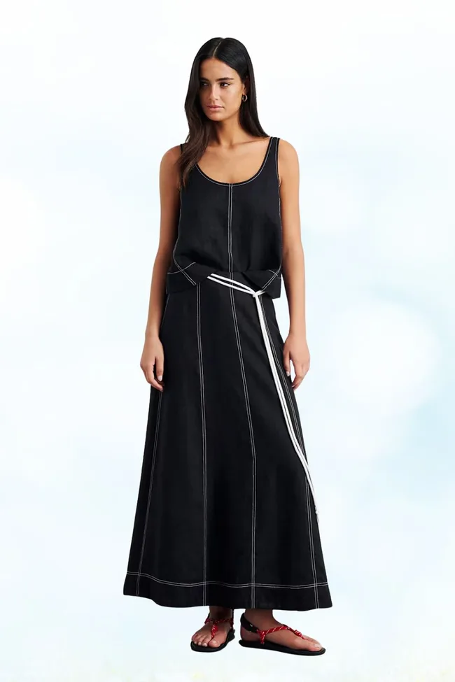 We are loving this piece for a more elevated look, with its contrast seams and waist tie, the skirt is perfect for your day to day or for dressing up in the evening.