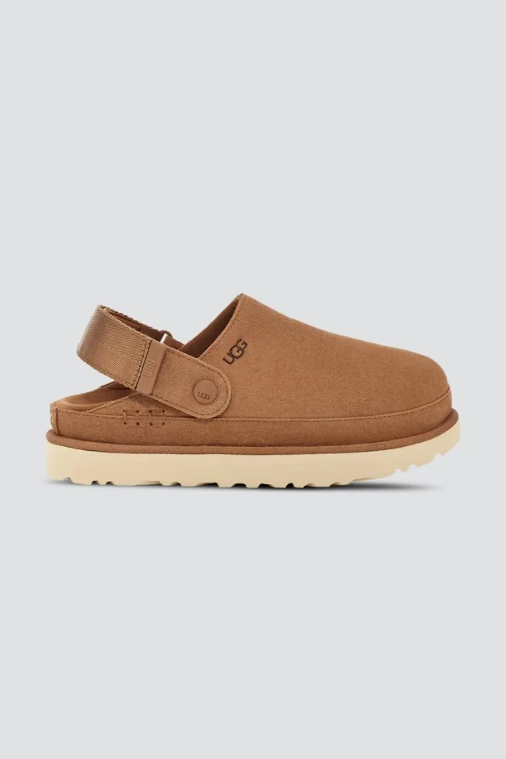 Suppose you love the look of your cult Birkenstock Boston’s but are after something a touch more cosy. In that case, UGG’s Goldenstar Clogs offer a similar silhouette yet are lined with comfy recycled polyester fibres to keep your toes warm when the cold starts to bite.